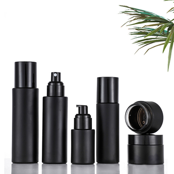 Commercio all'ingrosso 10g 30g 50g vasetti di crema cosmetica nera opaca 30ml 50ml 100ml bottiglie spray pompa nera bottiglie di lozione in vetro smerigliato
